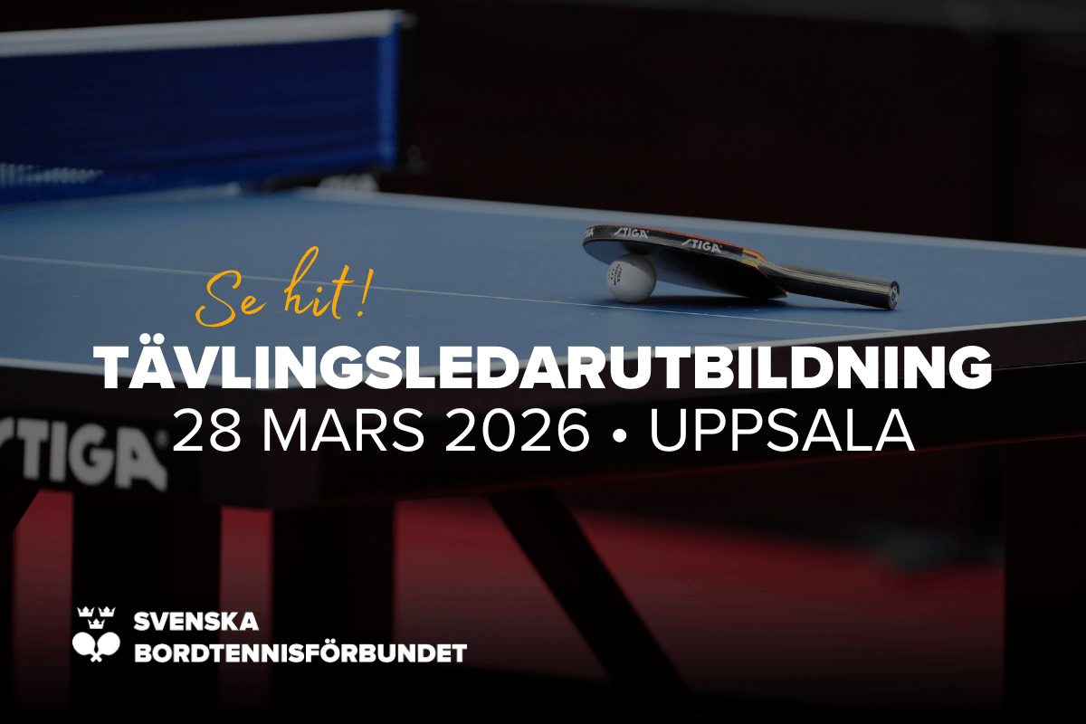 Välkommen till Svenska Bordtennisförbundets, SBTF:s, Tävlingsledarutbildning  Denna Tävlingsledarutbildning är en kombination av en digital utbildningsdel, som ska vara genomförd och godkänd, innan du deltar på den fysiska delen. Dessutom ingår ett digitalt Teamsmöte onsdagen den 11 mars innan du deltar på den fysiska utbildningen. På Teamsmötet går vi igenom inlämningsuppgiften och nya systemet i TAS. Fysisk utbildningsdag: lördag […]